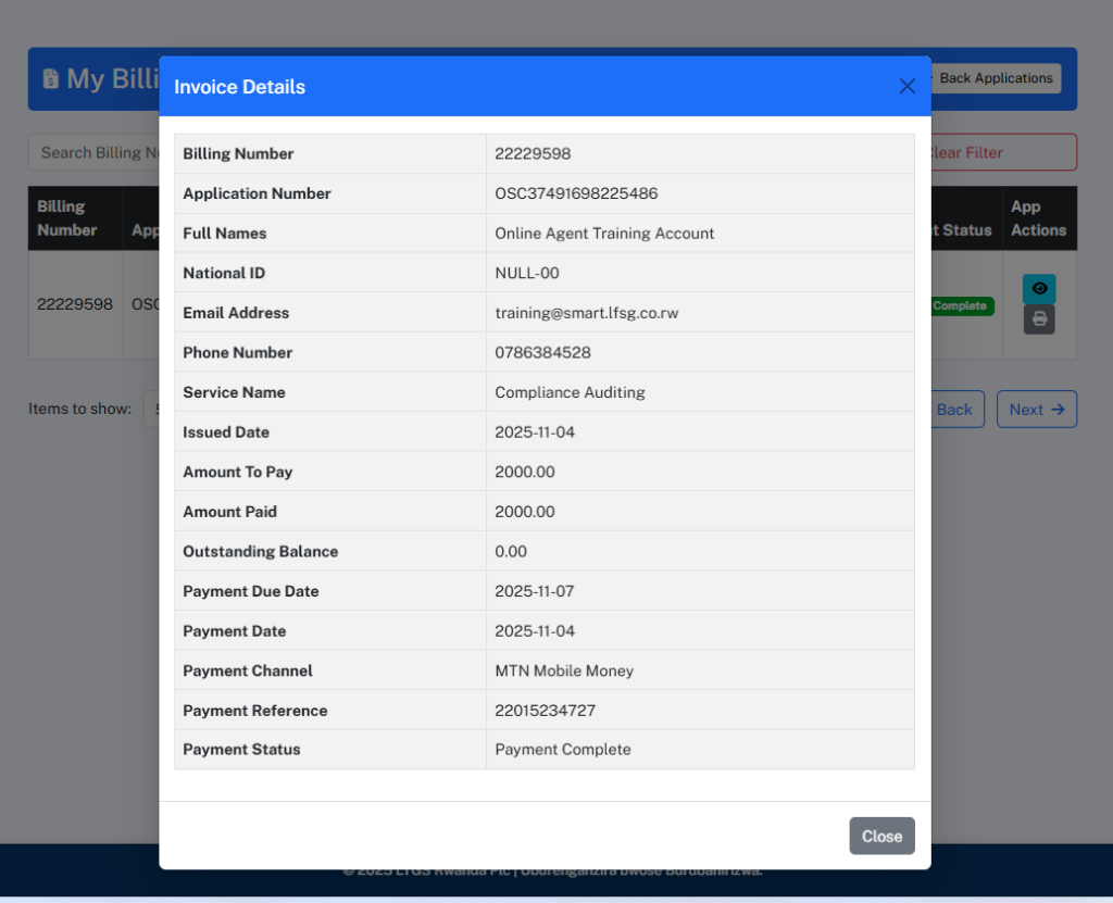 kugirango Bill yawe yongere gusubizwa kugihe wandikira ishami ry’imari kuri finance@lfsg.co.rw usaba ko amakuru ari kuri bill akurwamo igasubizwa kugihe, yaba yishyuwe ugasaba ko basuzuma ubwishyu.