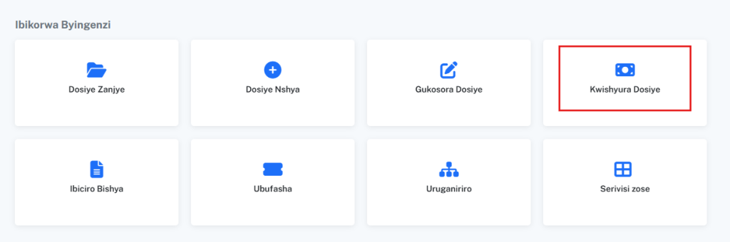 Mu gihe ari konti y’umu agenti, winjira muri konti yawe maze ukajye ku bikorwa byigenzi ugahitamo ahanditse “Kwishyura Dosiye” hanyuma bakakugeza kuri paji ibonekaho dosiye zose zigomba kwishyurwa.