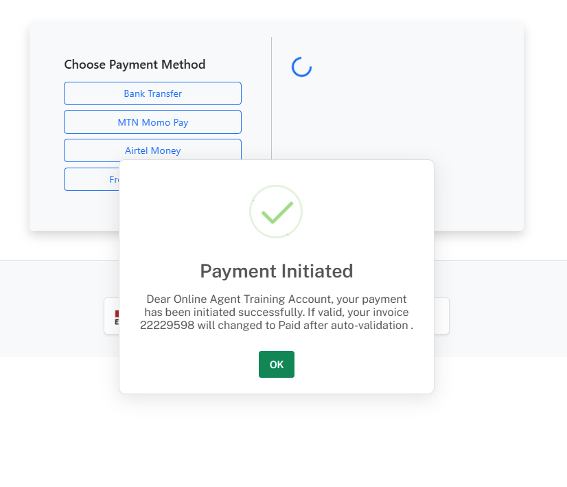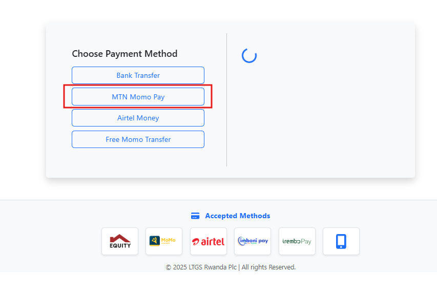Iyo umaze kwemezaho kugirango wishyure; hahaza ishusho igaragara hejuru irimo uburyo bugera kuri bune bwo wahitamo mugihe ushaka kwishyura burimo; Bank Transfer, MTN Momo Pay, Airtel Money, Free Momo Transfer, hanyuma ugahita uburyo bukunogeye, gusa uburyo bwihuse kandi bumenyerewe ni MTN Momo Pay, wemezaho.